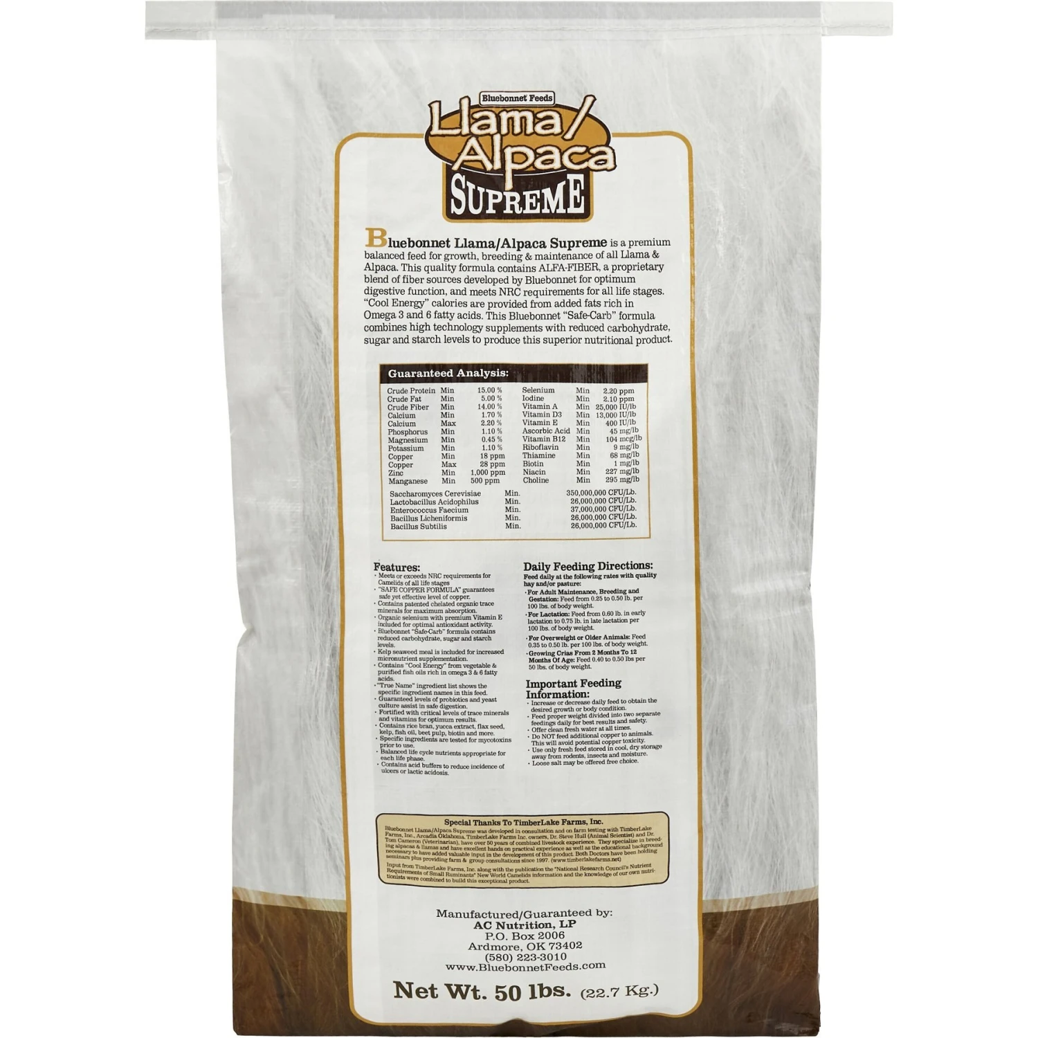 Bluebonnet Feeds Supreme Llama Alpaca Food, 50-lb Bag