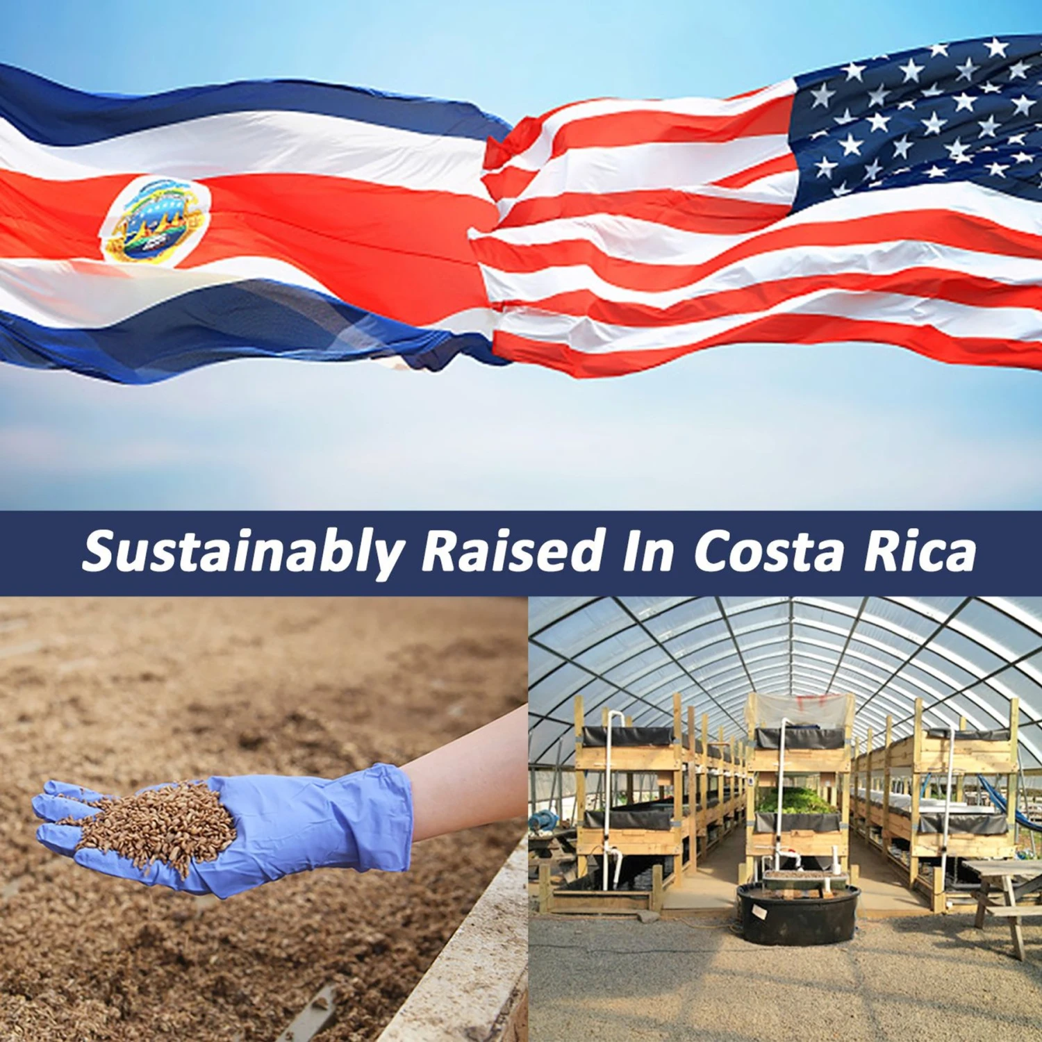 - Dried larvae are fed pesticide-free, non-GMO organic feeds.