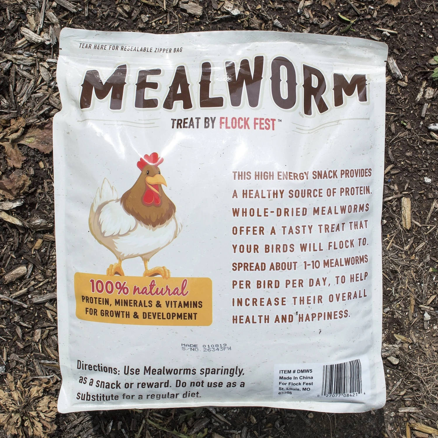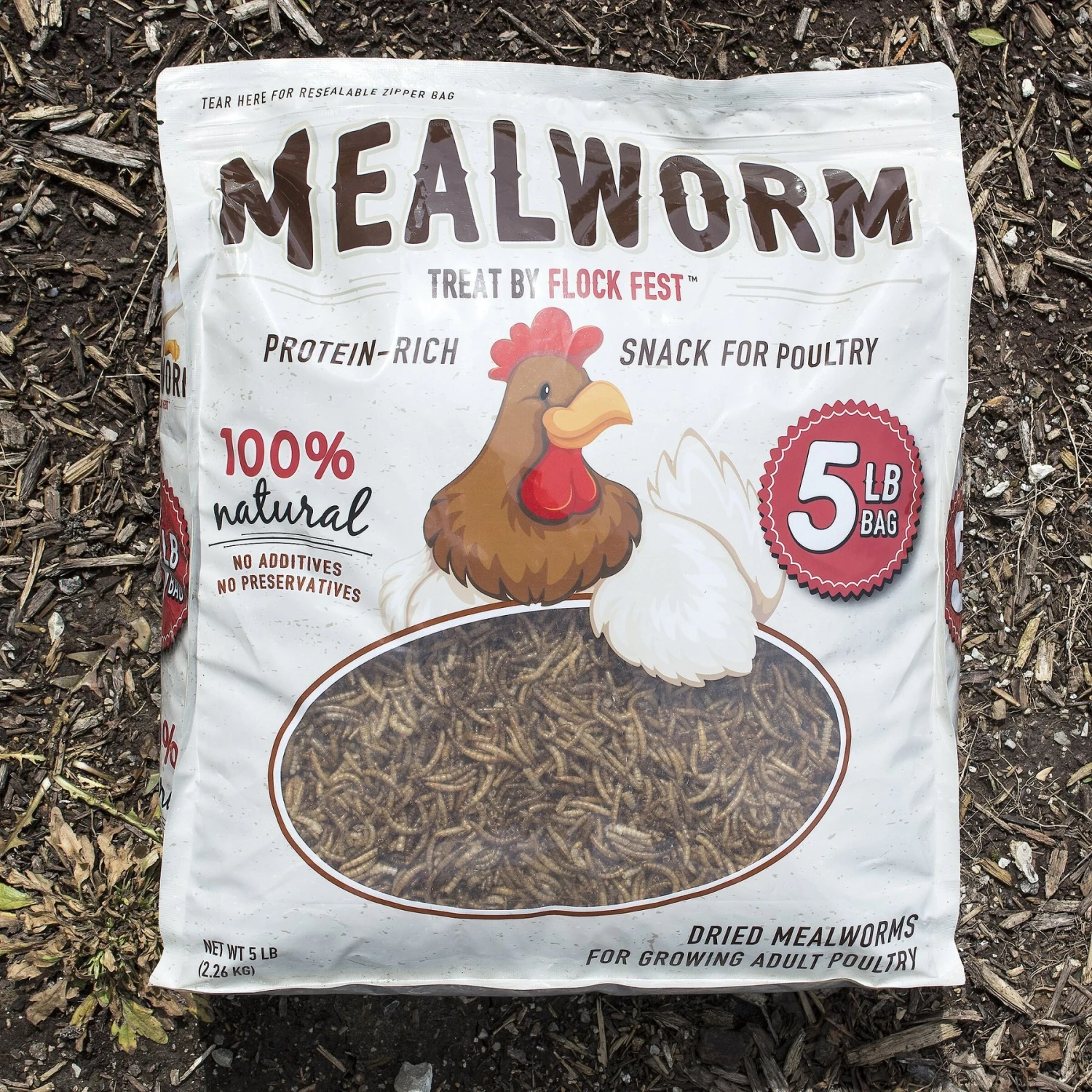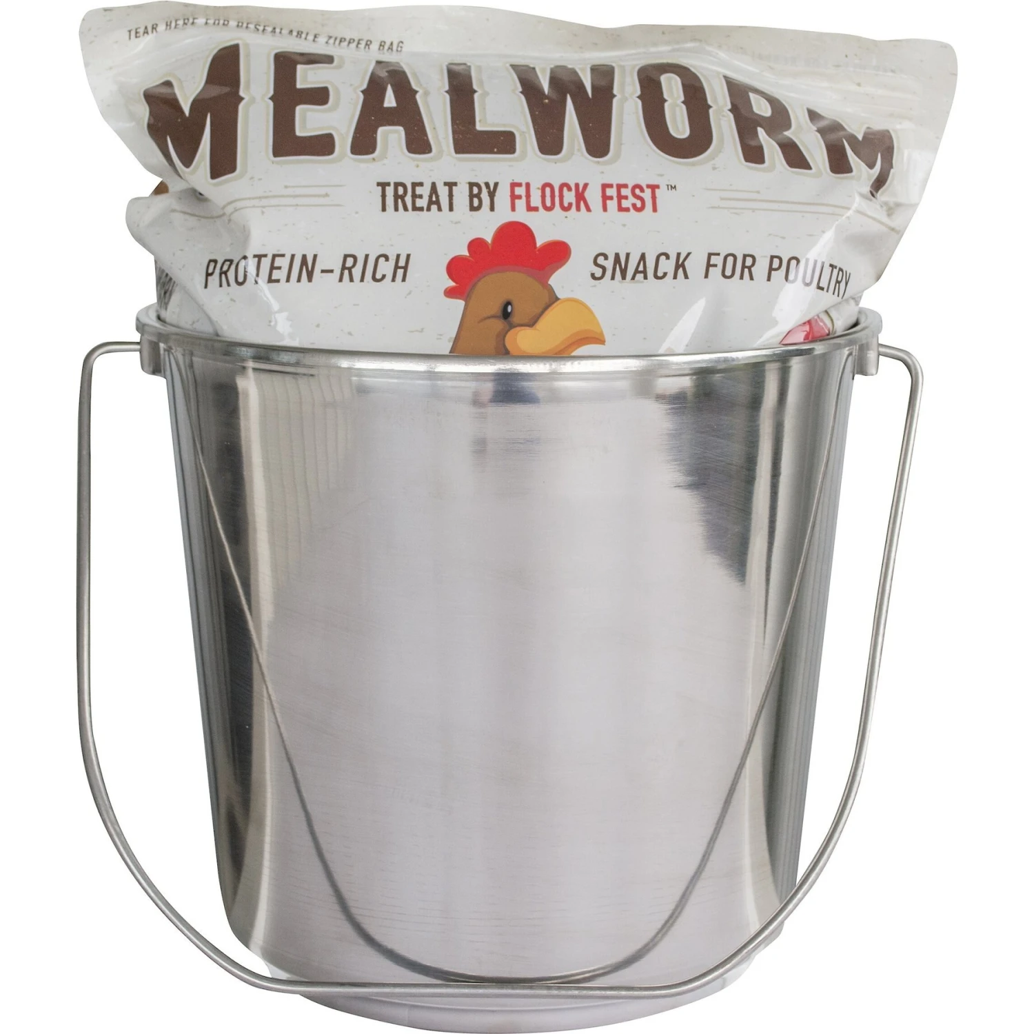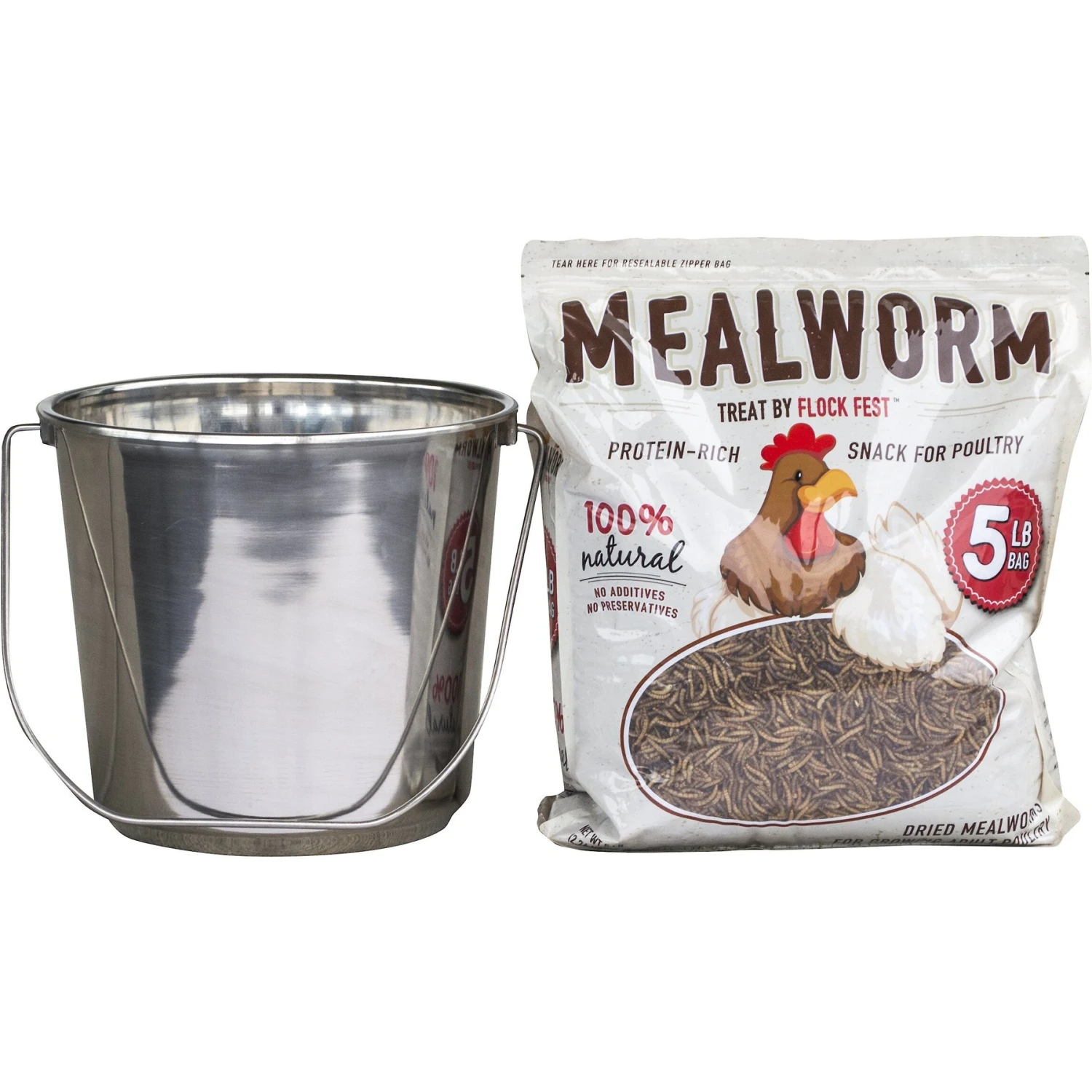 Flock Fest Dried Mealworms Adult Chicken Treats, 5-lb Bag & Stainless Steel Feeder Bucket