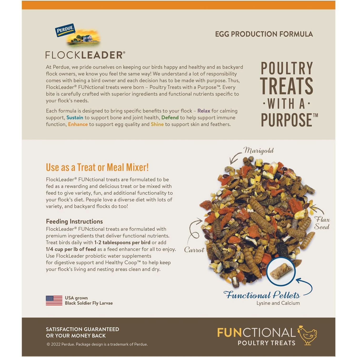 - Contains an exclusive functional pellet with key nutrients like the amino acid lysine to support egg production and increase egg weight, zinc to support calcium metabolism and keep bones strong while producing eggs, and manganese to support fat metabolism and liver function.