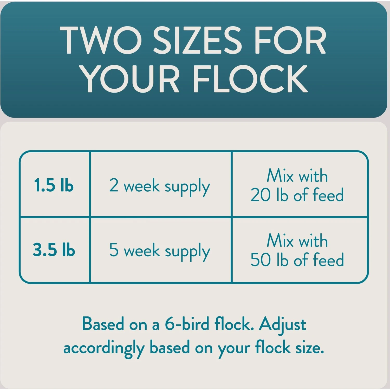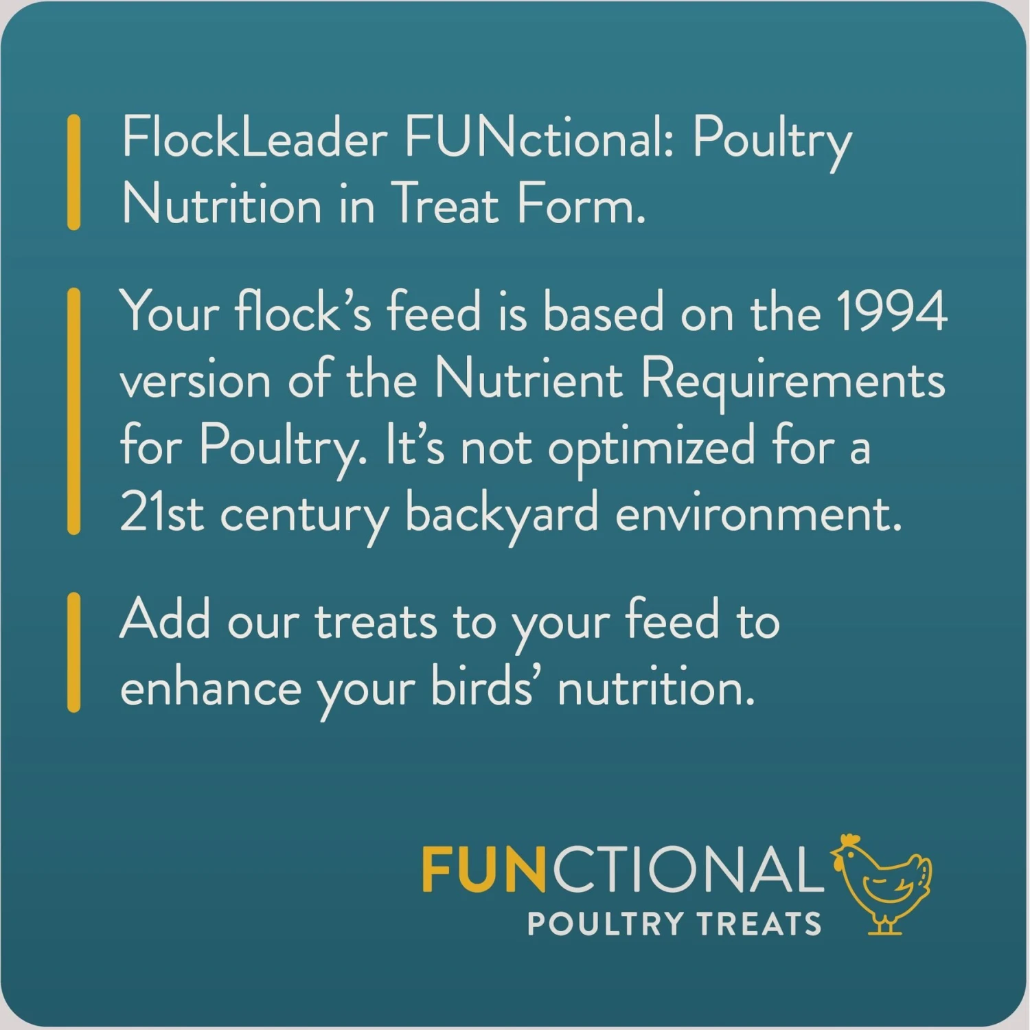- Poultry treats with a purpose – feed as a treat or mix with feed.
