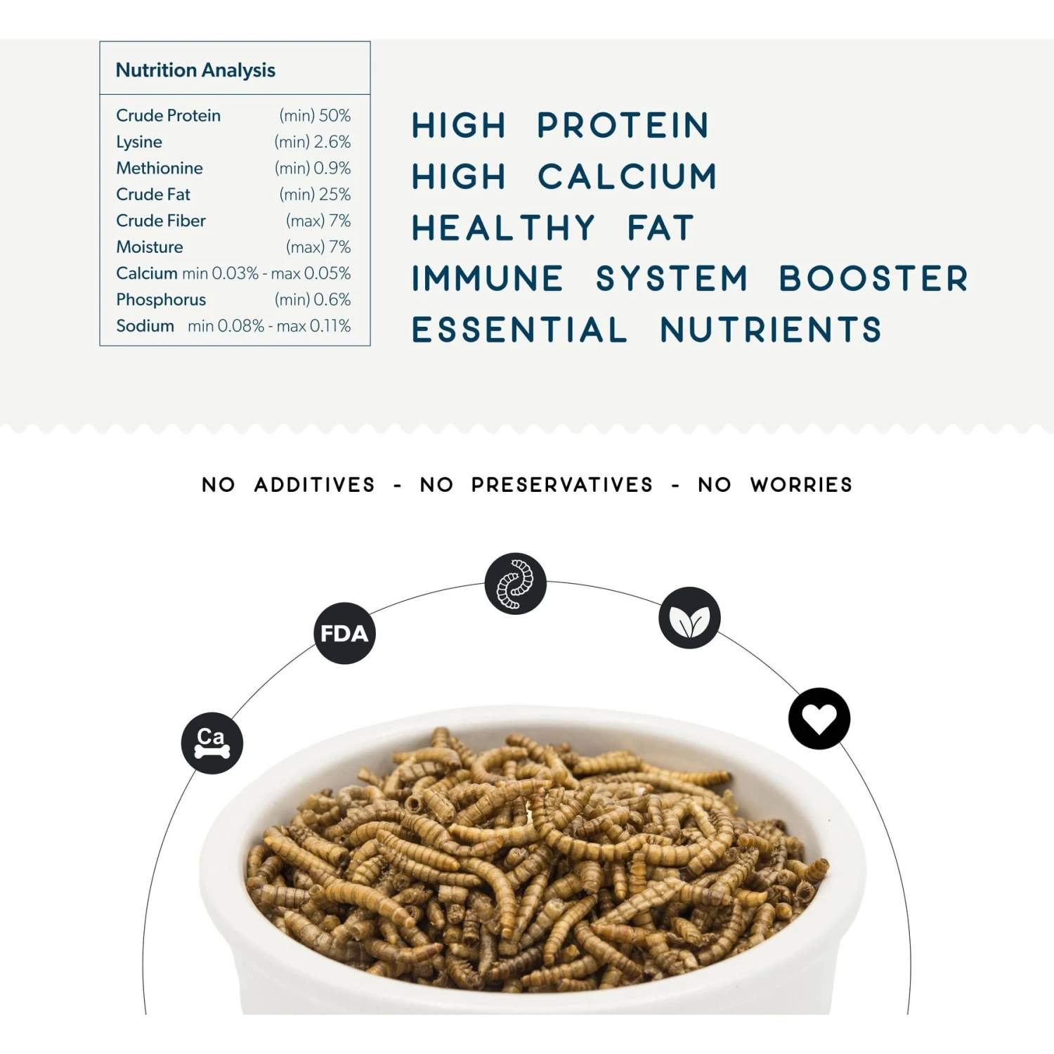 - Dried mealworms are a great source of protein, and have more protein than live mealworms.