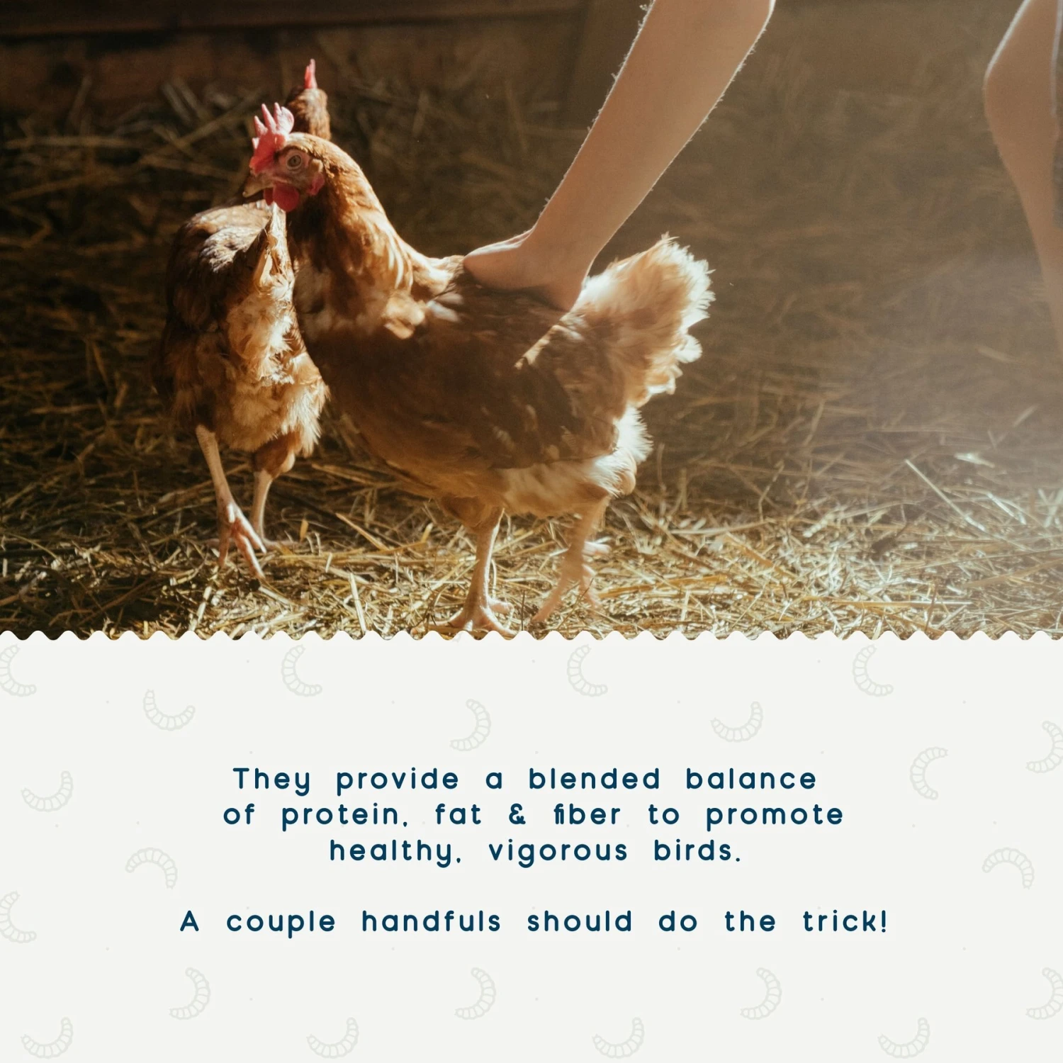 - A tasty, irresistible snack for your chickens without the inconvenience of handling live worms.