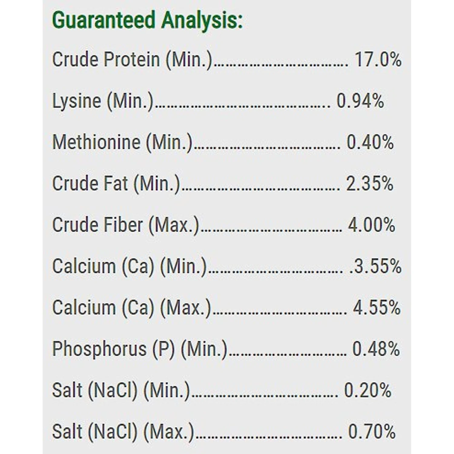 - Formulated with essential amino acids and top calcium levels to aid in the production of strong shells and yummy eggs.