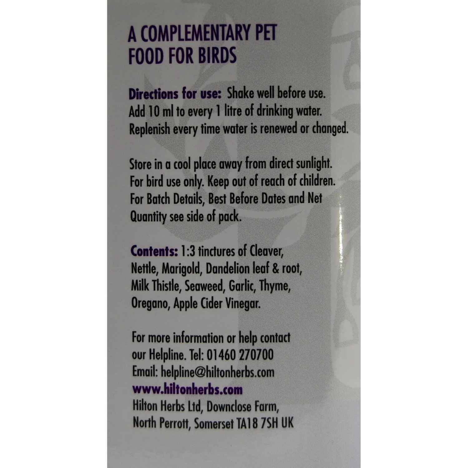 - Encourages healthy plumage, skin condition and overall well-being.