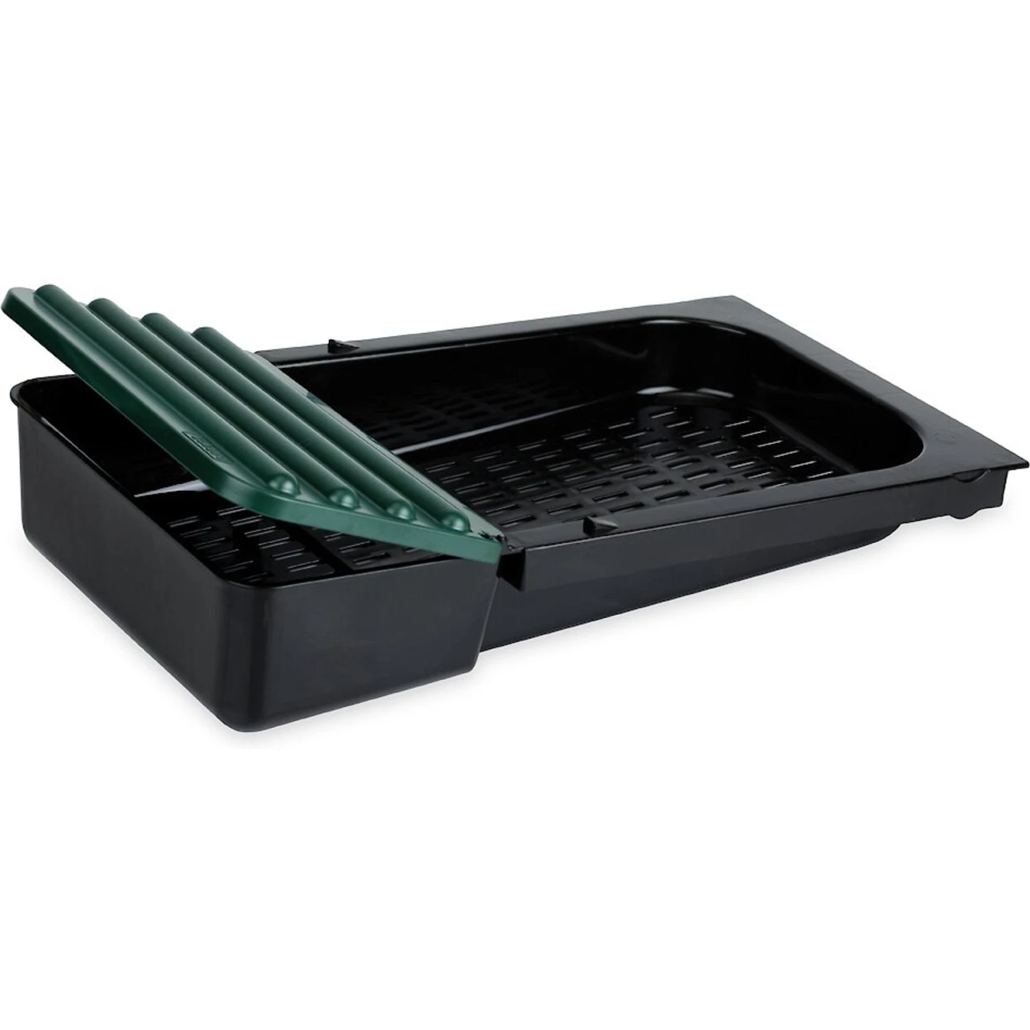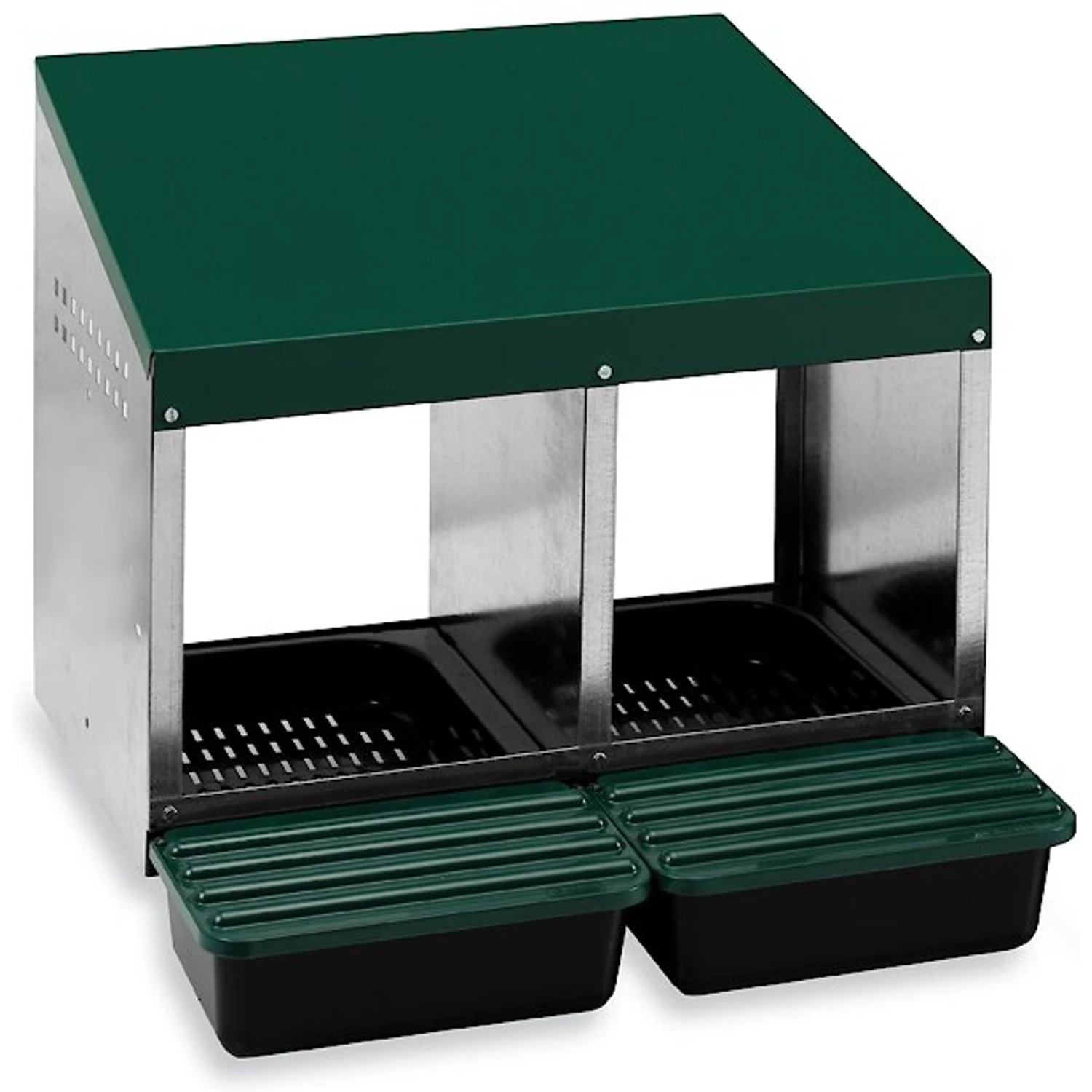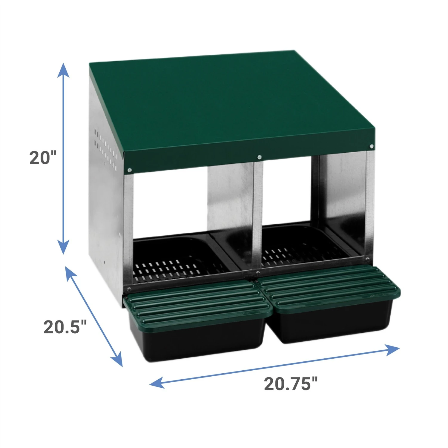 Help keep your hens happy and your eggs unscathed with the Homestead Essentials 2 Compartment Chicken Nesting Box. This roll-out nesting box has a slight tilt that encourages eggs to roll to safety underneath the lid and help limit any damage by the adult birds. It features a no-perch roof to prevent roosting on the top and a large handle for easy egg collection without disturbing your hen friends. This two-compartment chicken nesting box comes complete with a filtered base on the laying tray that helps minimize cleaning by allowing unwanted material to fall through. It’s crafted using durable plastic and metal materials that are easily assembled with the step-by-step instructions, included hardware and just a flathead screwdriver and an adjustable wrench.