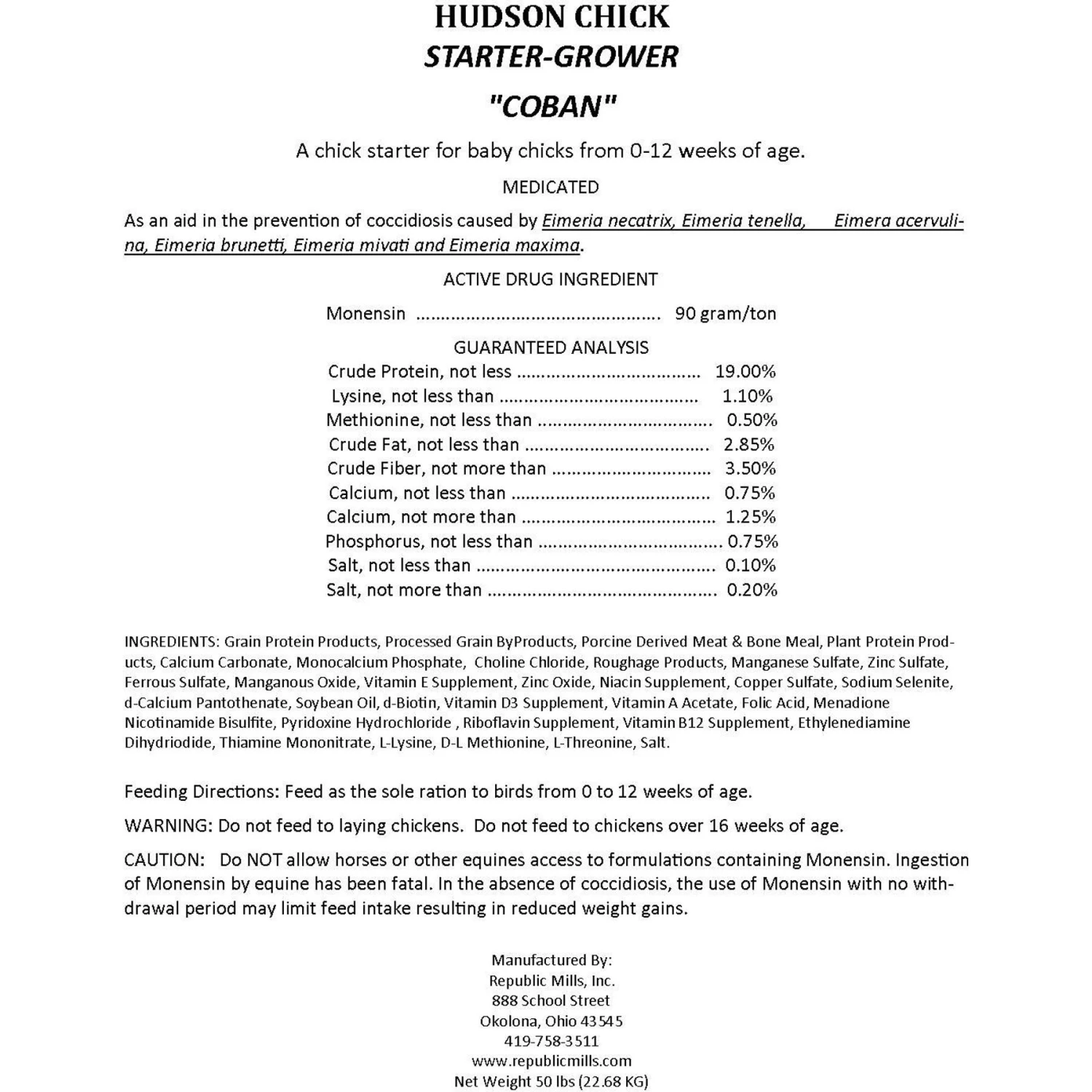 Hudson Feeds Poultry Feeds Chick Starter-Grower Medicated Chicken Feed, 50-lb Bag