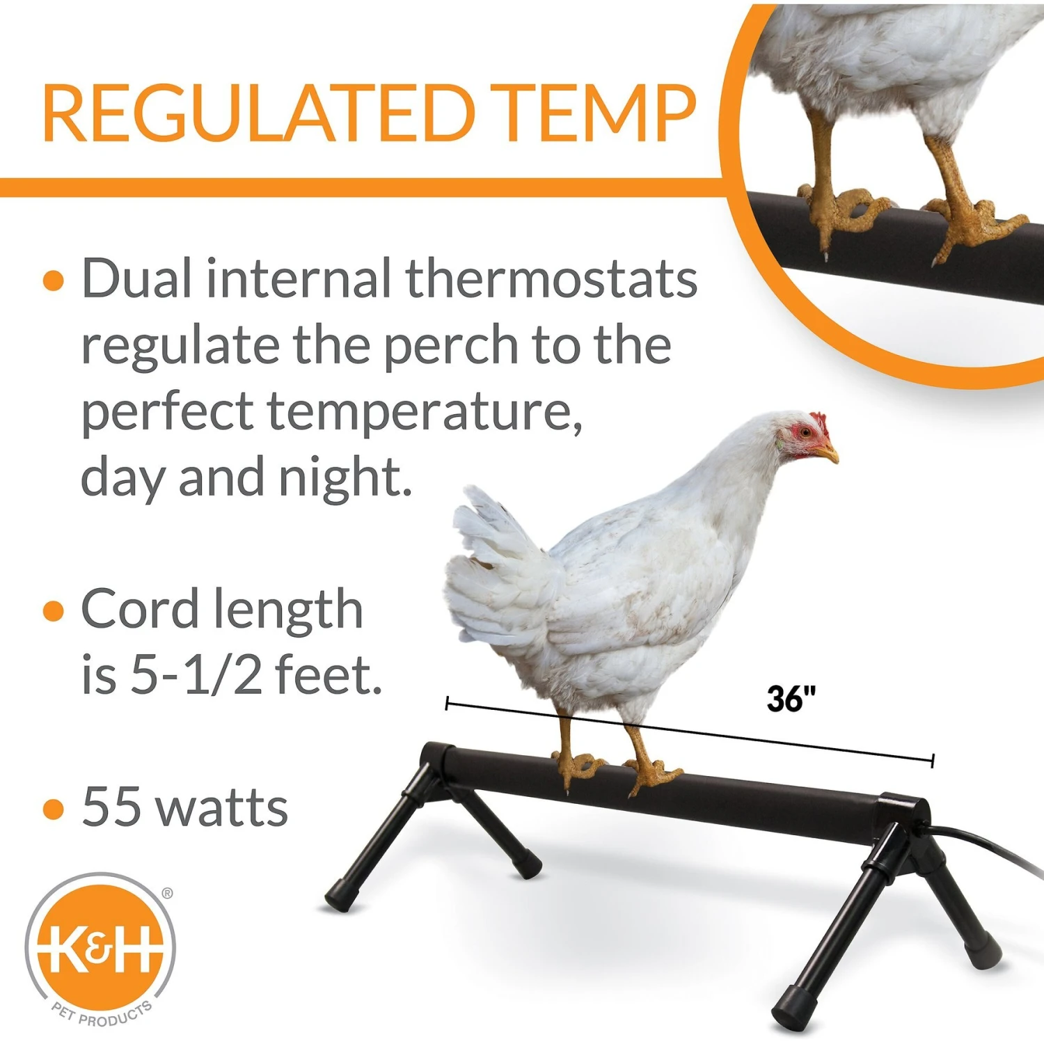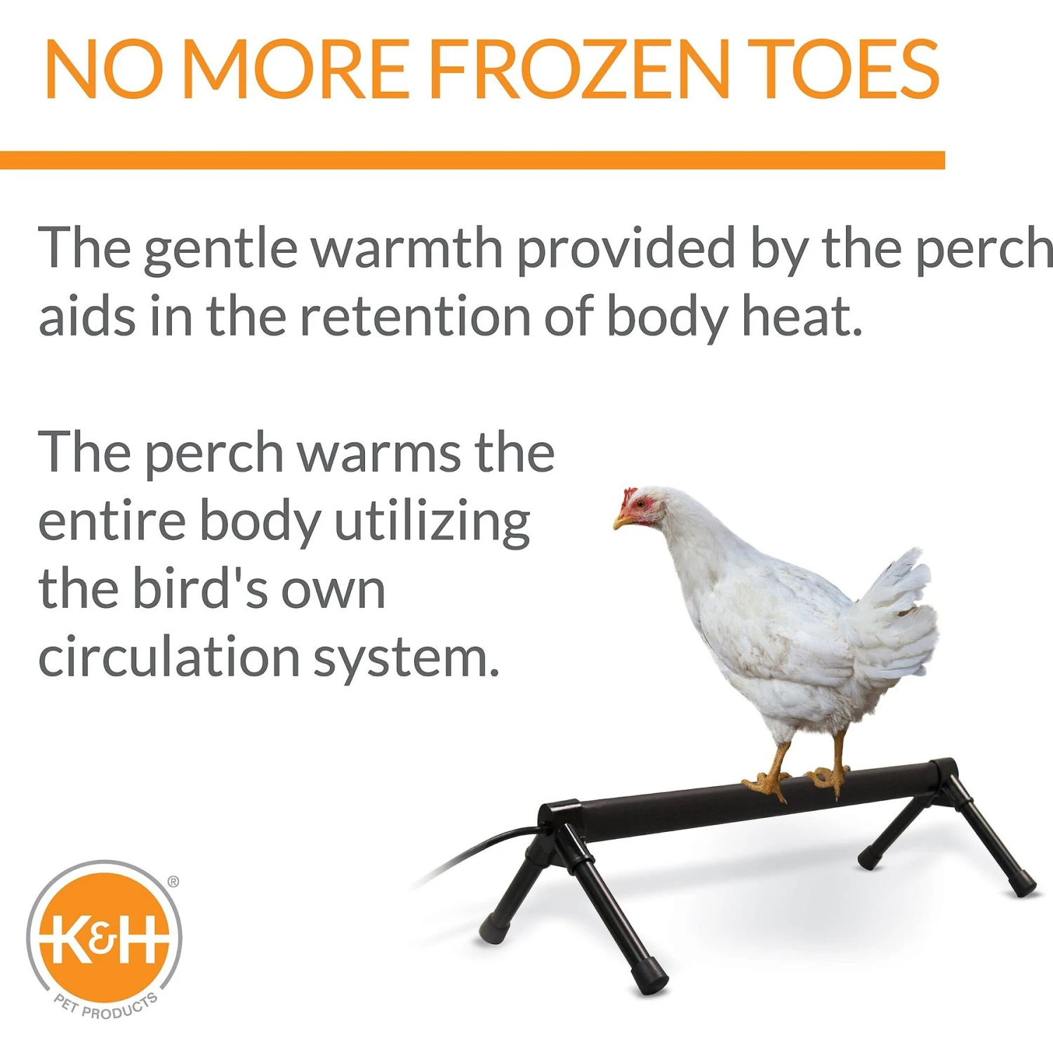 - Chickens lose body heat through their feet—help them keep warm during chilly weather with a heated perch.