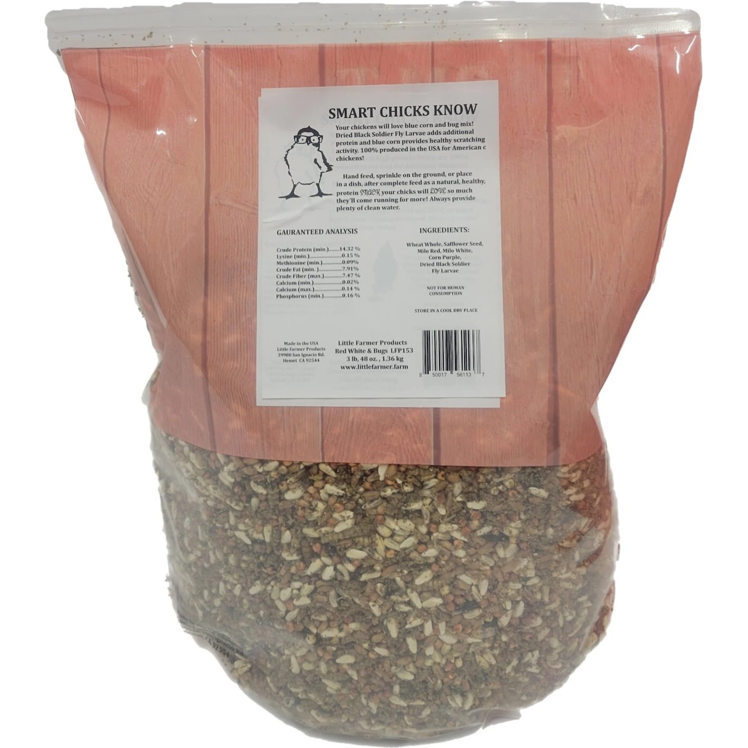 Little Farmer Products Red White & BUGS! Black Soldier Fly Grubs, Blue Corn, Safflower Mix Chicken Treats