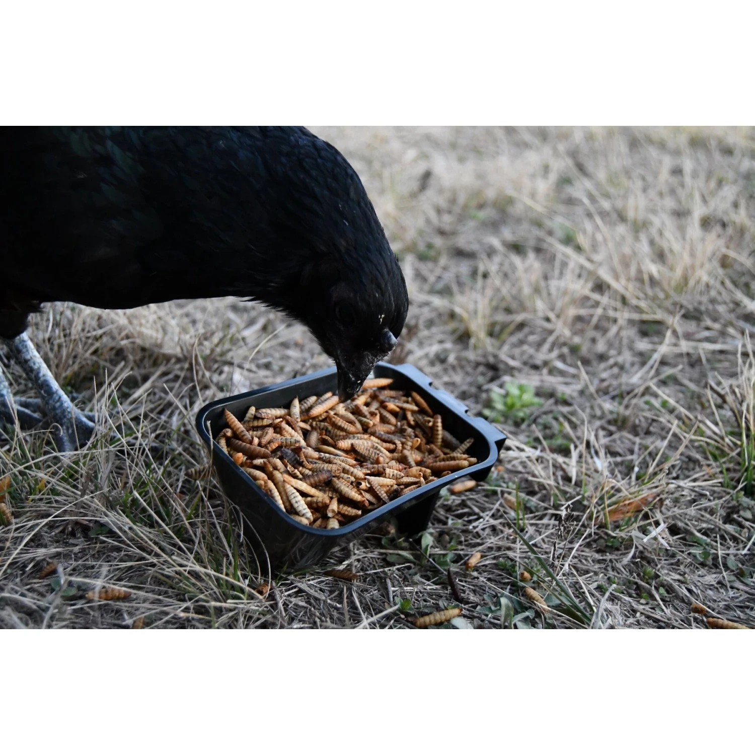 - BSF grubs offer 34 percent crude protein—great for egg laying, feather growth and molting season.