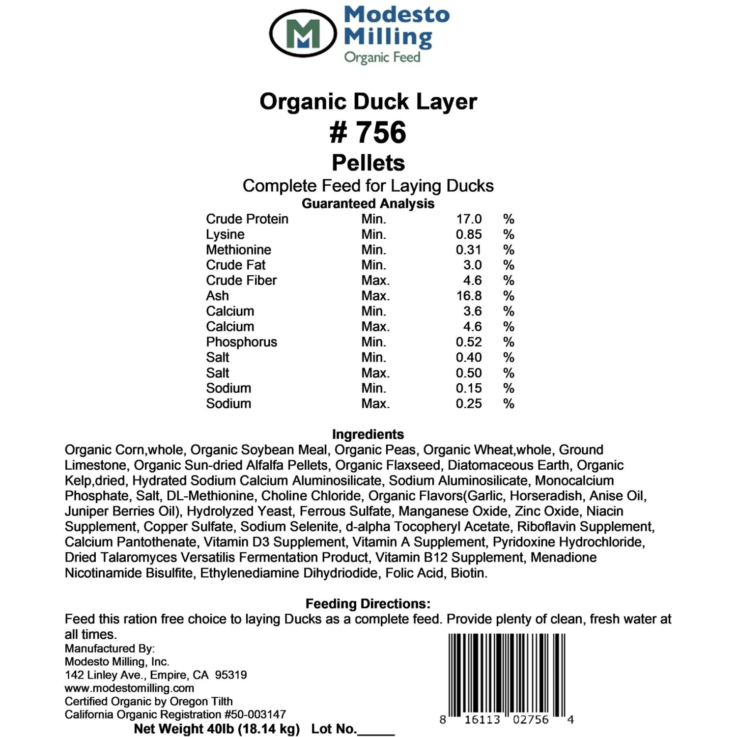Modesto Milling Organic 17% Protein Duck Layer Pellets Duck Feed