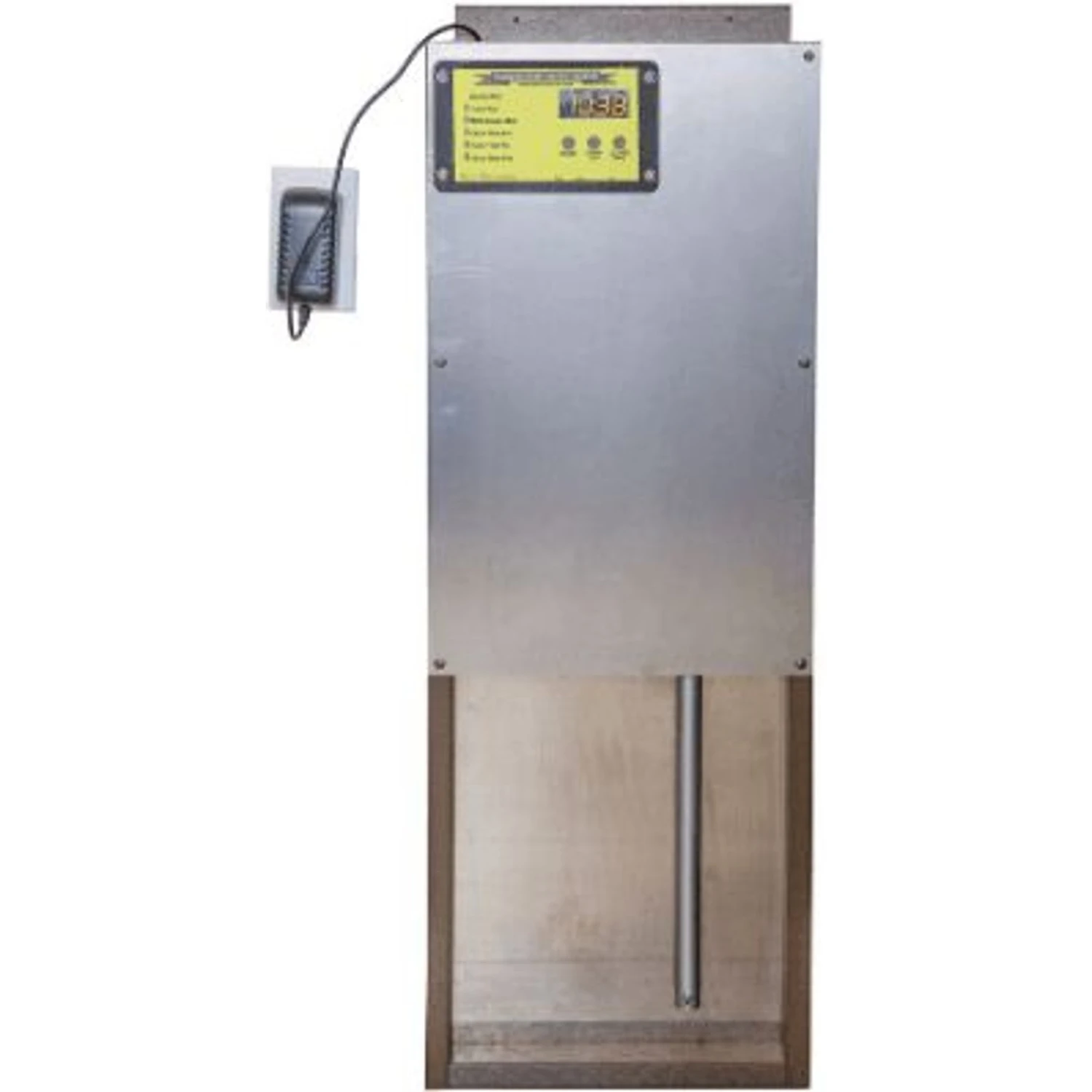 - Package includes 1 poly-aluminum automatic door and 1 AC power plug-in that works with electric or a 12-volt battery (sold separately).