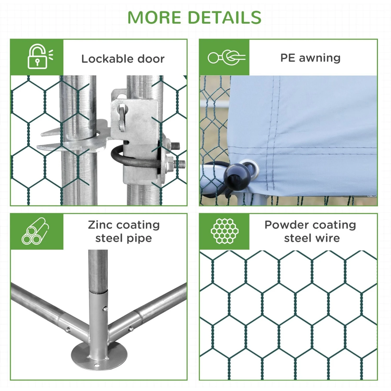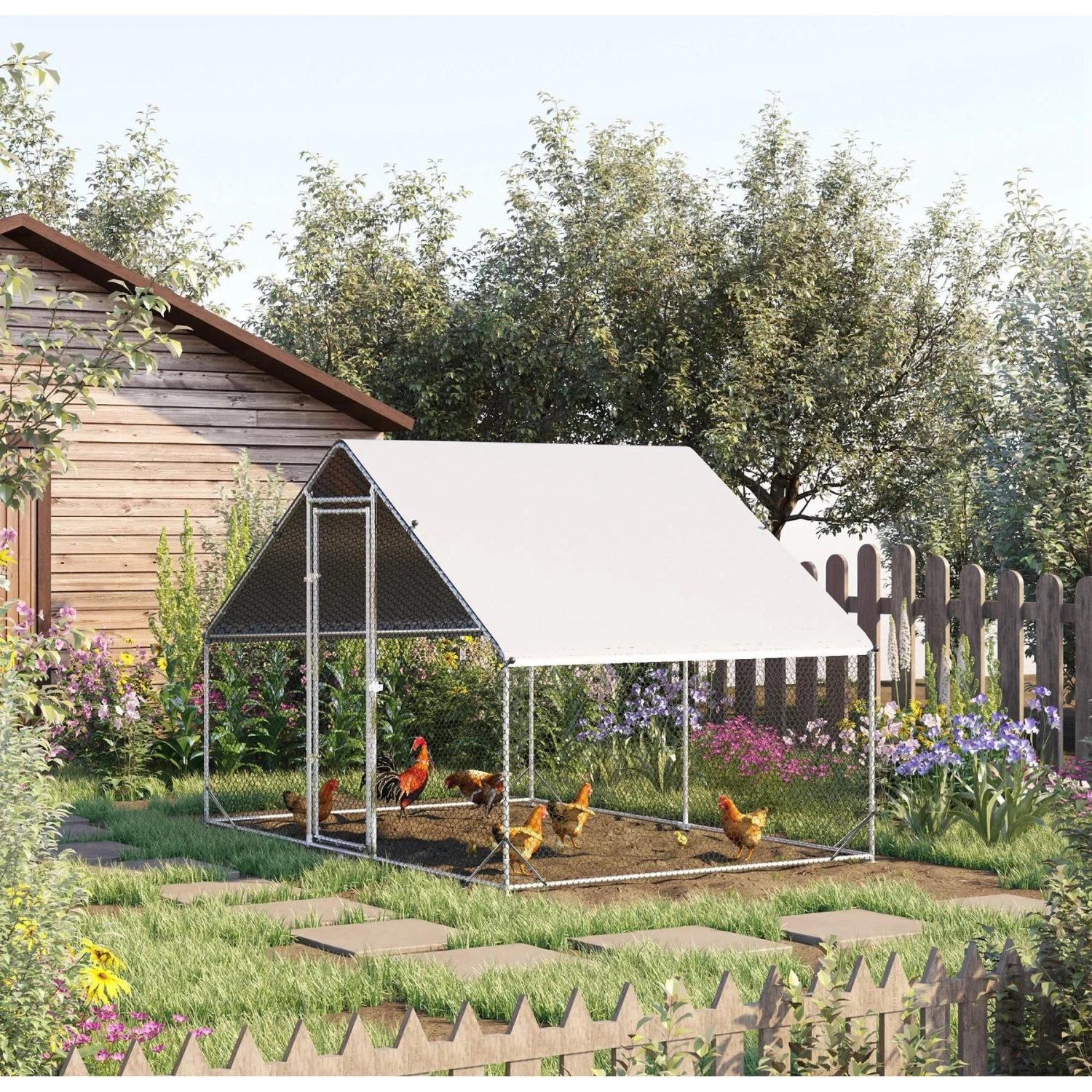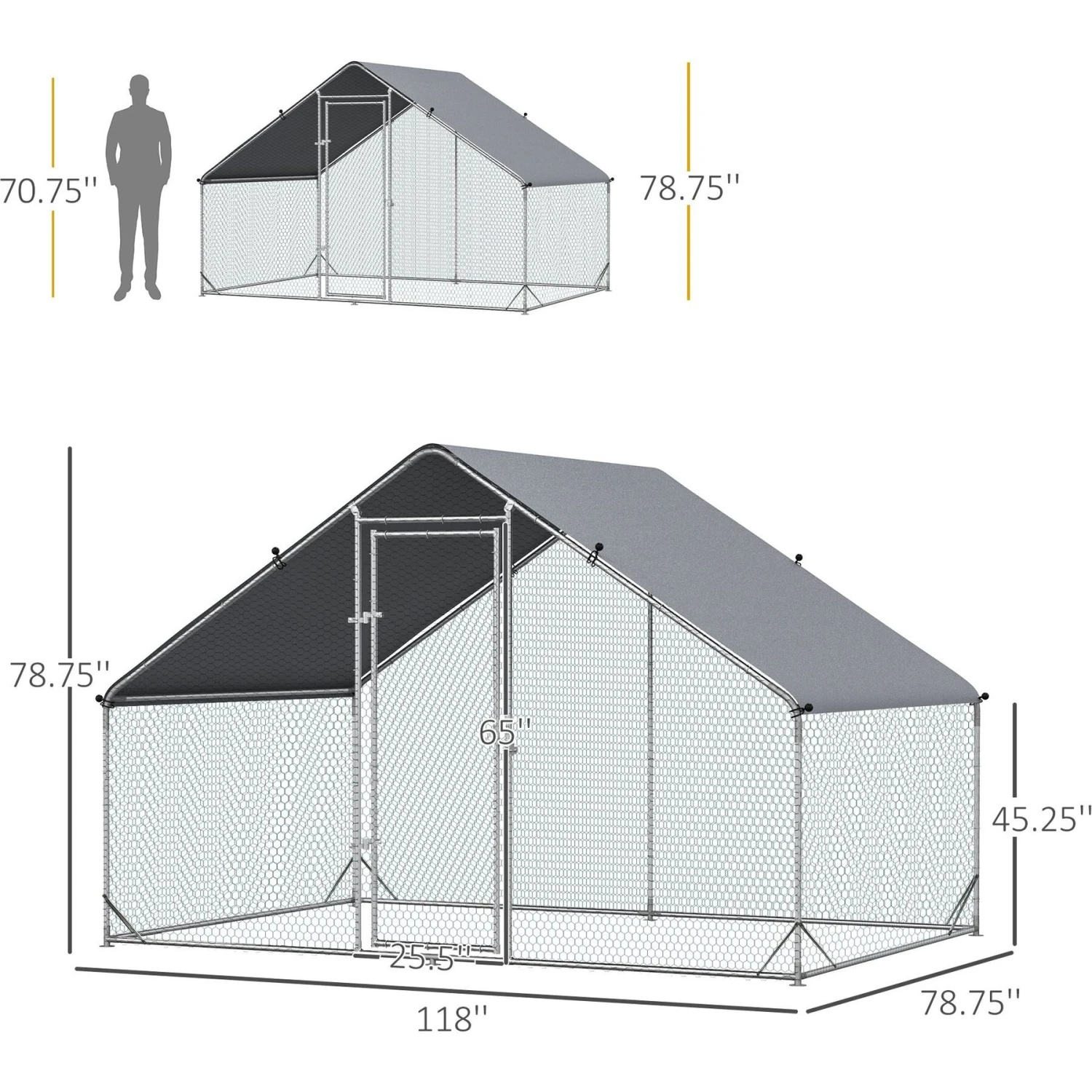 PawHut Walk-in Poultry Cage Galvanized Outdoor Metal Chicken Coop, Silver, Large