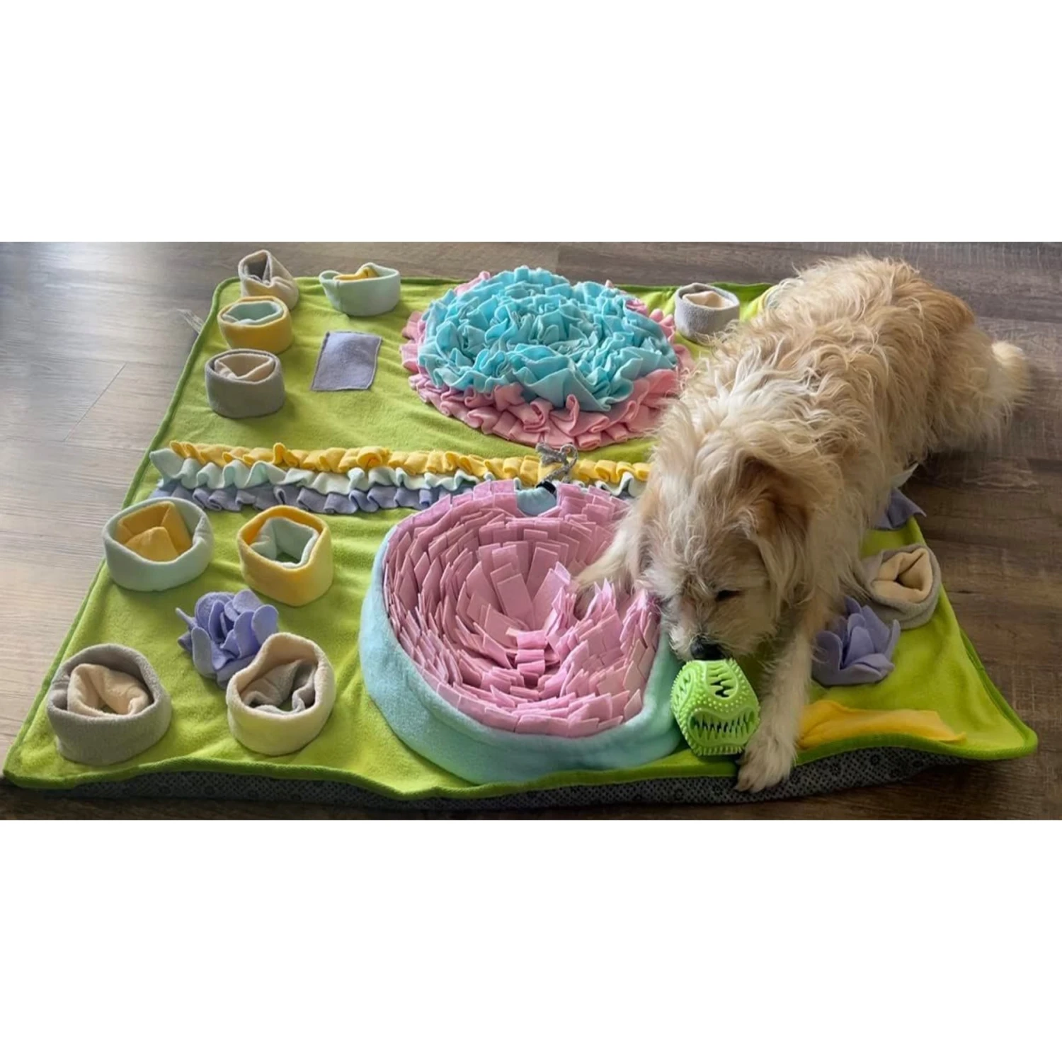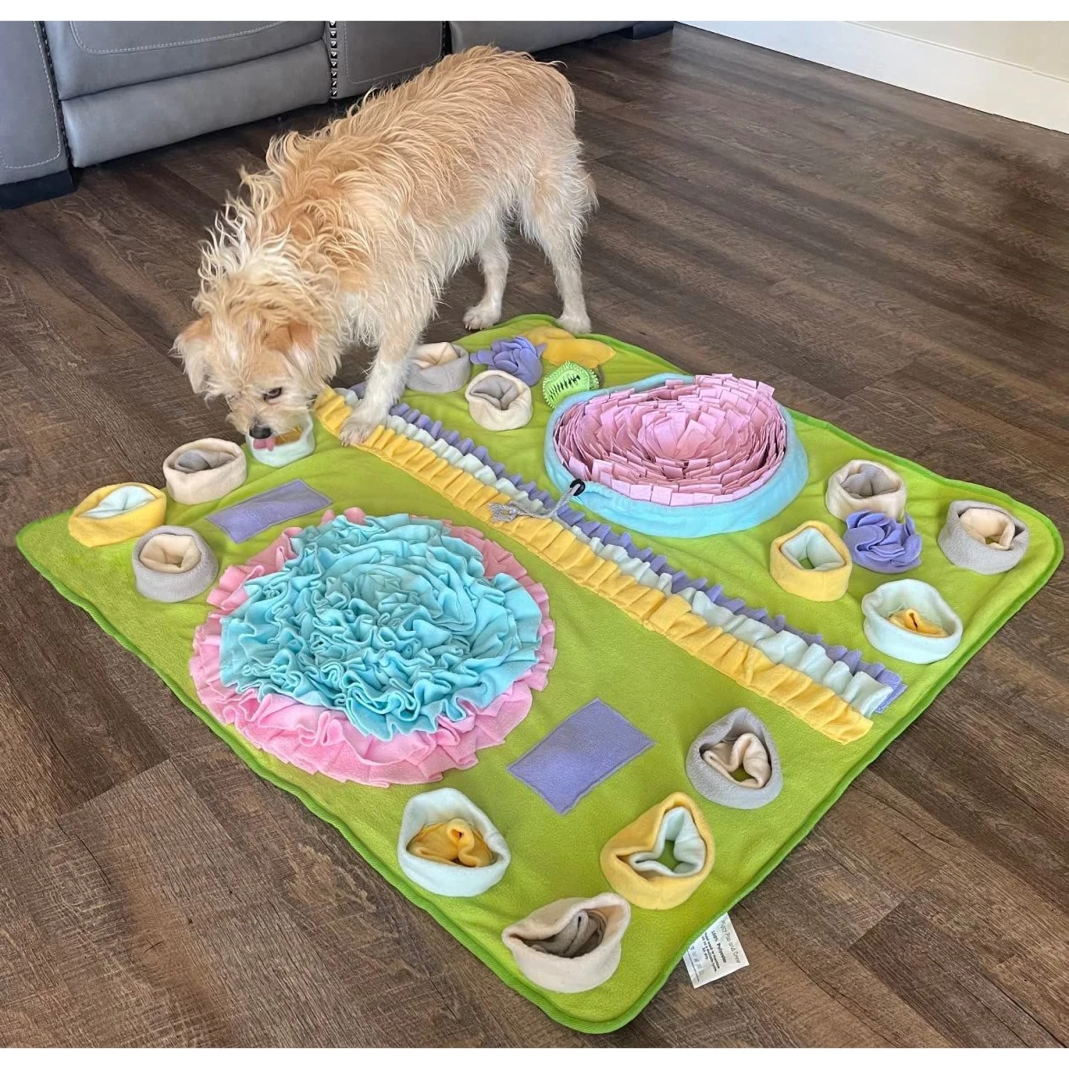 Piggy Poo And Crew Double Bowl Mat With Treat Ball & Paper Crinkle Squeakers Farm Toy, Large