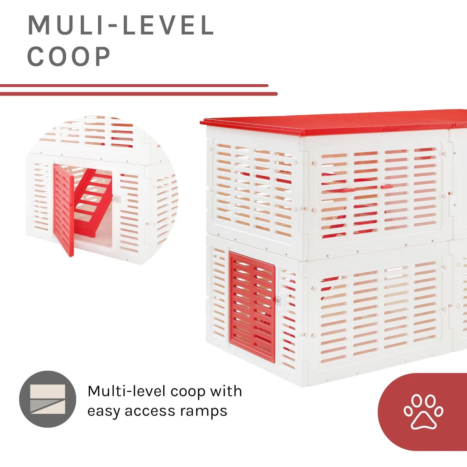 - Spacious coop can comfortably house 3 to 5 chickens.