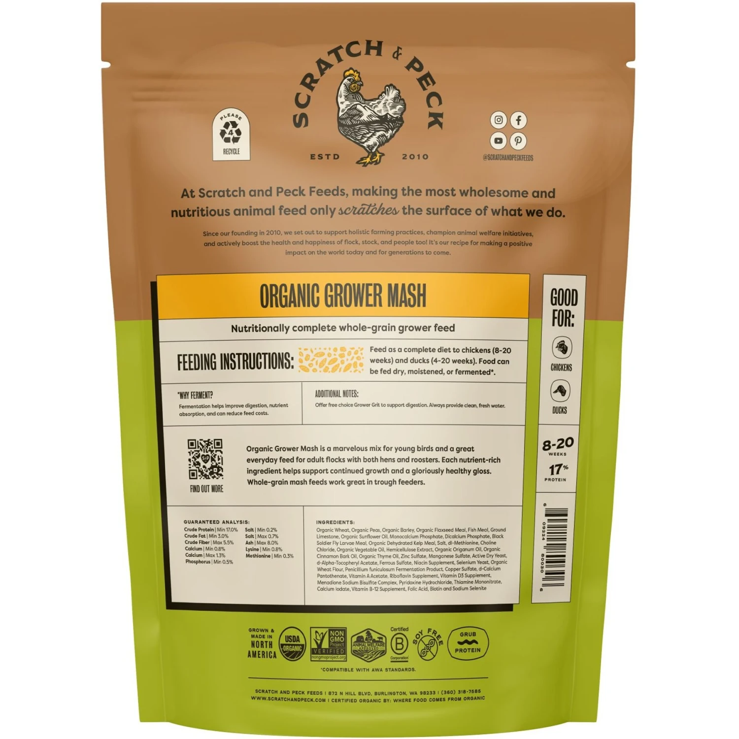 Scratch And Peck Feeds Organic 17% Protein Grower Mash Chicken Feed