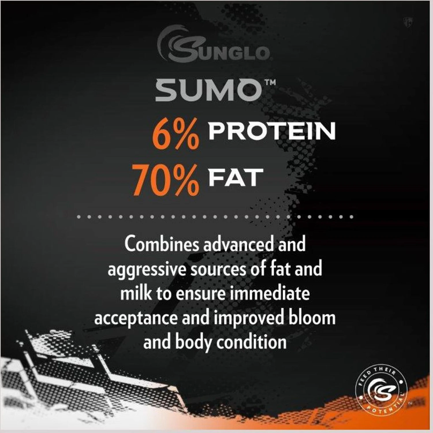 - Blend of dry fat and milk sources promotes a rapid change in sheen and fat cover, can be fed in a ration mix or as a top dress.