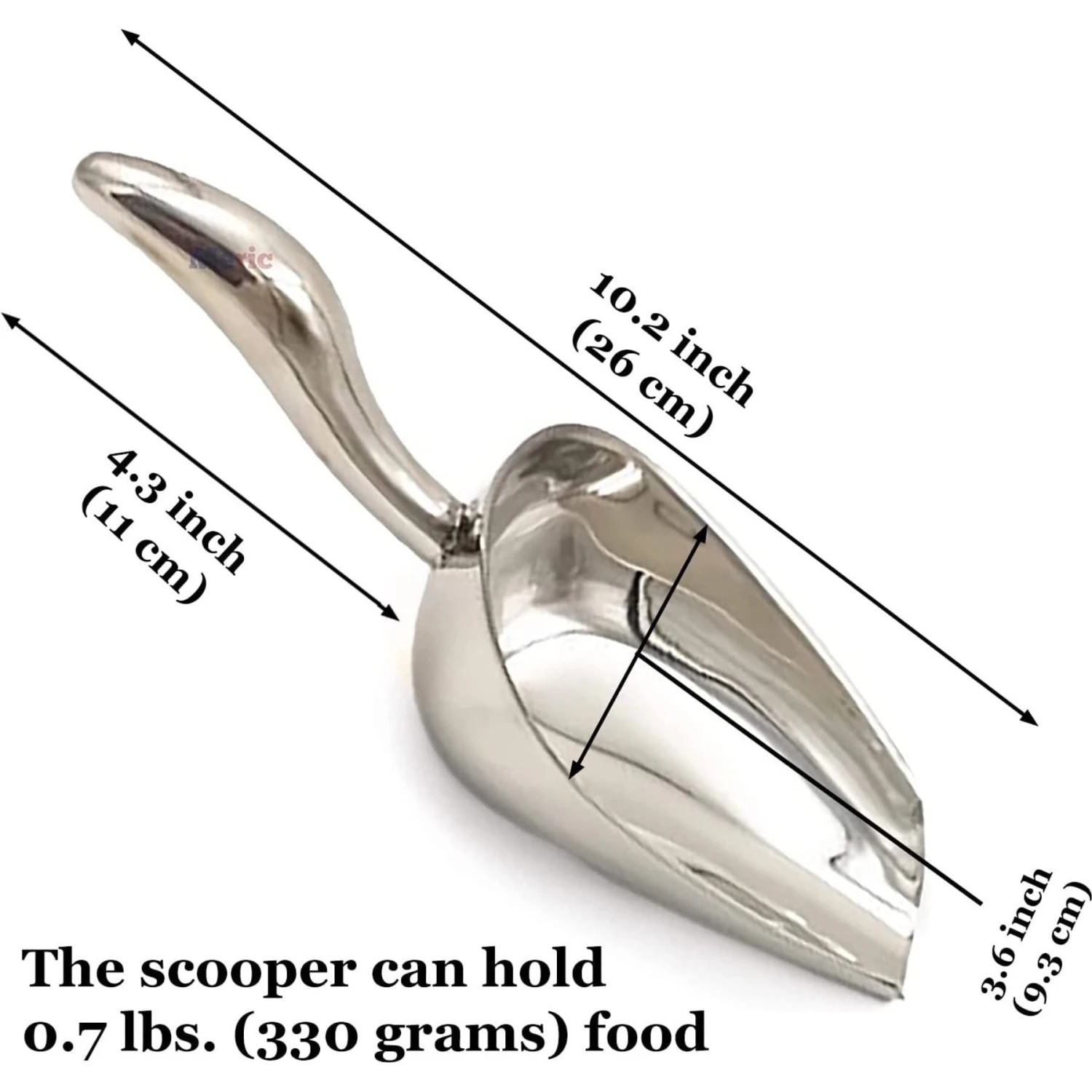 - Pet food scooper made from durable stainless-steel materials for long-lasting use.