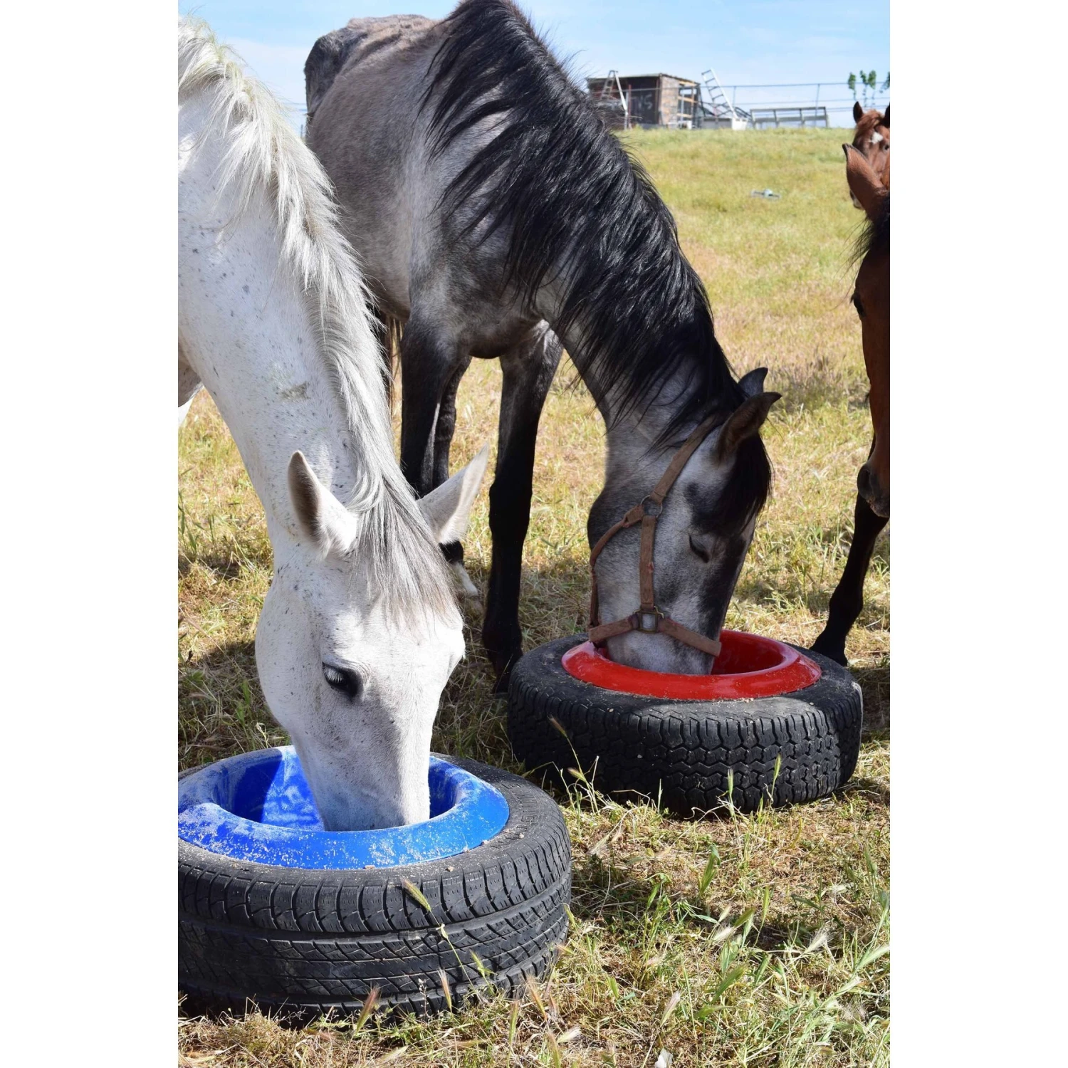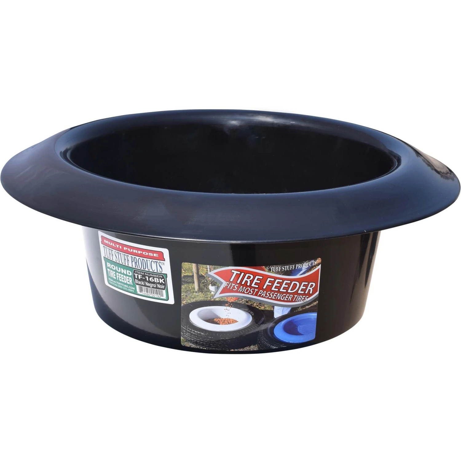- Durable feed pan, fits inside of a vehicle tire (sold separately).