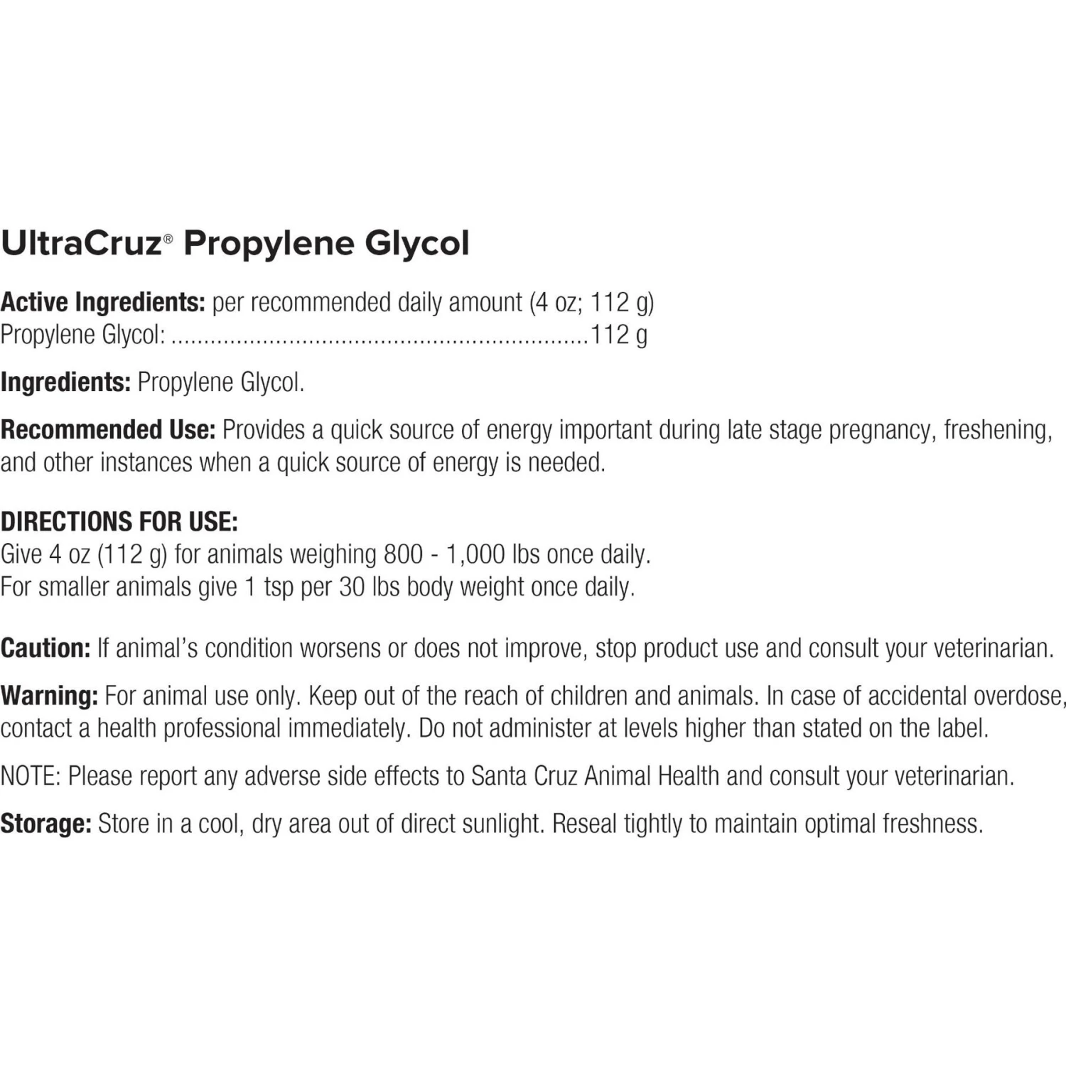 - Propylene glycol livestock supplement provides a quick source of energy for your barnyard buddy.